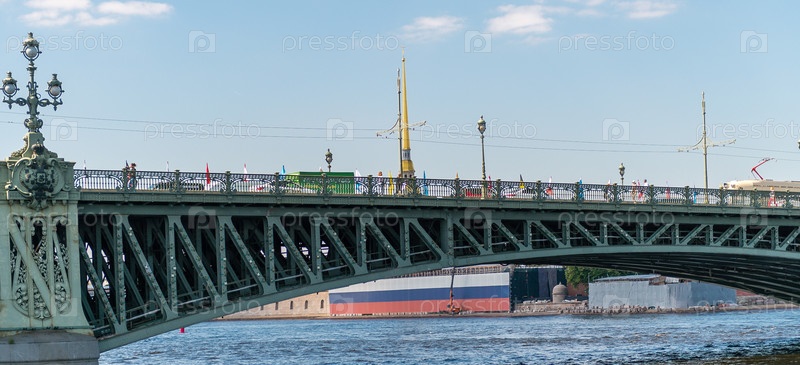 Россия, Санкт-Петербург, 24.07.2024: Река Нева и Троицкий мост в Санкт-Петербурге