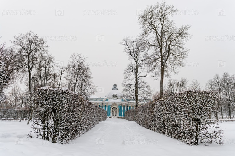 Россия, Санкт-Петербург, 2024 Январь: Екатерининский дворец в Царском Селе зимой. Зимний пейзаж