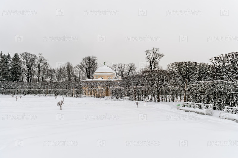 Россия, Санкт-Петербург, 2024 Январь: Екатерининский дворец в Царском Селе зимой. Зимний пейзаж