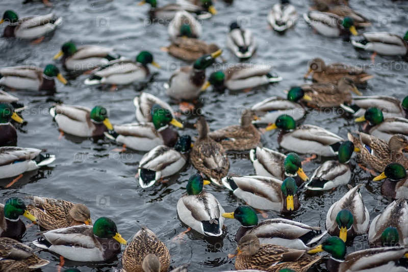 Утки в озере зимой в холодной воде
