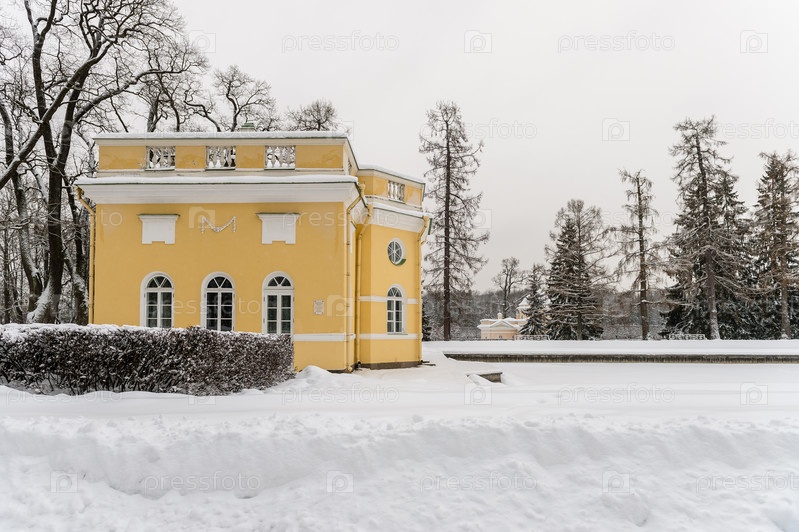 Россия, Санкт-Петербург, 2024 Январь: Екатерининский дворец в Царском Селе зимой. Зимний пейзаж