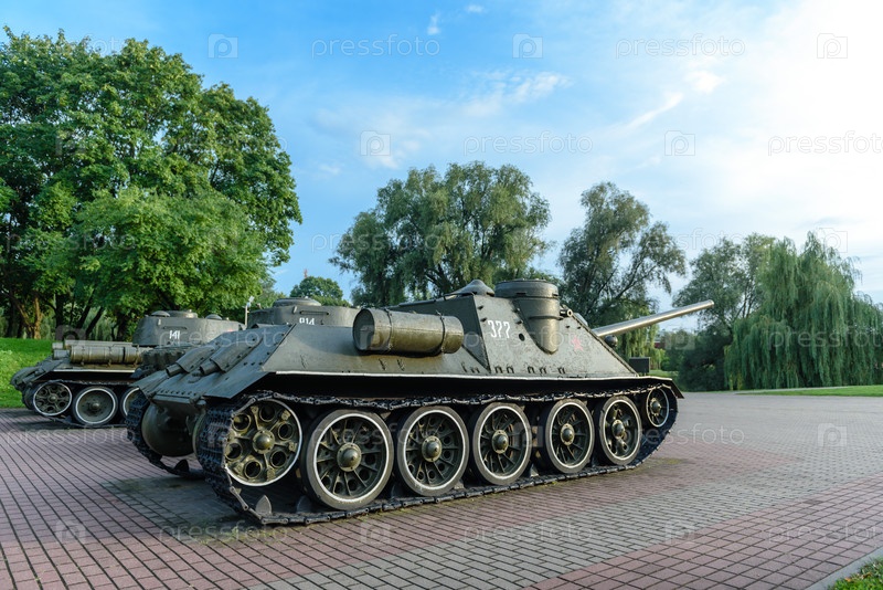 Беларусь, Брест, август 2023 г.: танки Т-34-85 в Брестской крепости