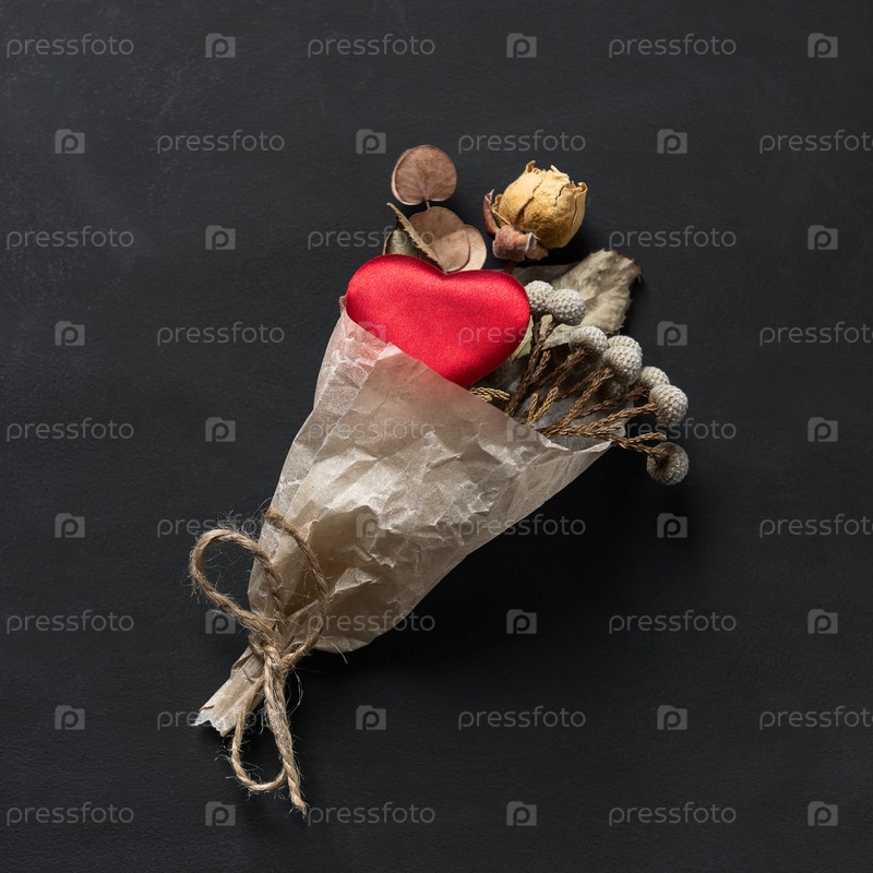 День святого Валентина - сумка с сердцем в подарок на черном фоне