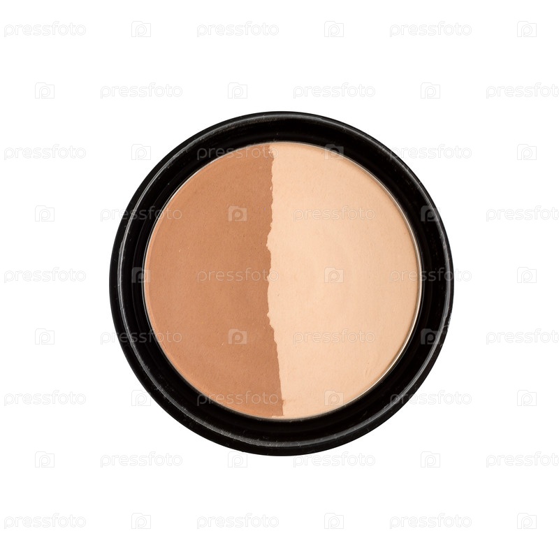 Сухая пудра для лица двухцветная на белом изолированном фоне