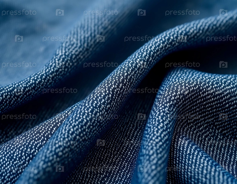 Джинсовая ткань насыщенного синего цвета элегантно лежит на поверхности, демонстрируя при мягком освещении ее сложное переплетение и текстуру. Она идеально подходит для создания модной одежды, например, джинсов для повседневной носки