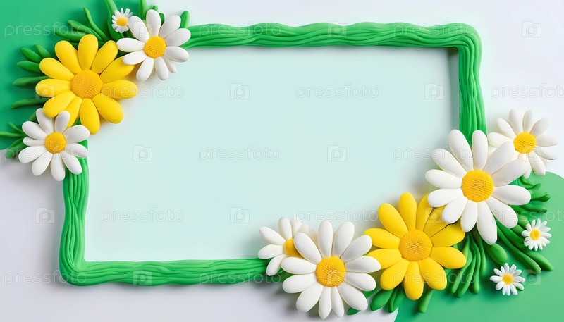 Нежные белые и желтые маргаритки украшают яркую зеленую рамку, привнося веселый штрих в пустое пространство. Этот игривый дизайн вдохновляет на радость и без усилий улучшает любую обстановку