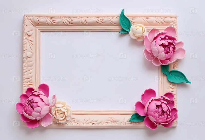Эта элегантная рамка подчеркивает изысканные пионы нежно-розового и кремового цвета на спокойном бежево-белом фоне, идеально подходящем для демонстрации дорогих сердцу воспоминаний