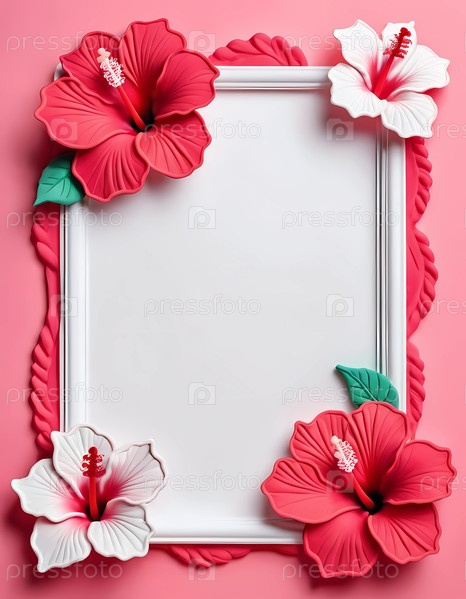 Яркие цветы гибискуса насыщенного красного и нежно-белого цвета окружают пустое пространство, побуждая к творчеству на игривом розовом фоне, излучающем тепло