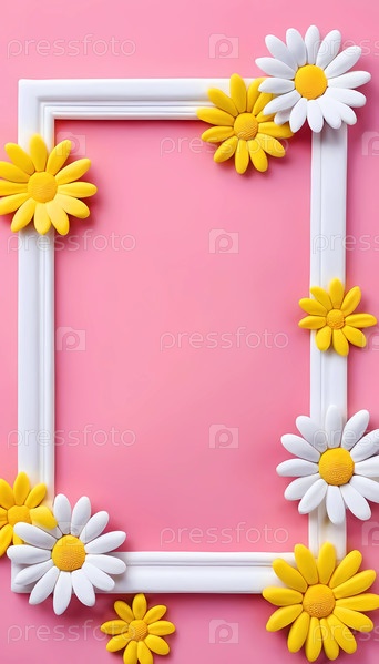 Очаровательная рамка, украшенная ромашками, в нежных белых, желтых и розовых тонах вдохновляет на творчество, создавая идеальное пространство для творчества и творческого самовыражения