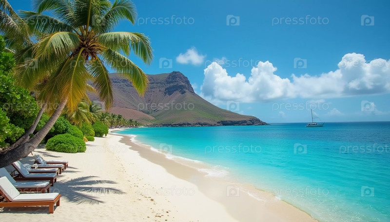 Погрейтесь под теплым солнцем на нетронутых берегах Палм-Бич, где бирюзовые воды встречаются с ласковыми волнами, а пальмы покачиваются на ветру, создавая атмосферу спокойствия и радости