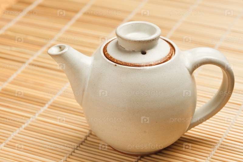 Китайский чайник на фоне бамбуковой циновки