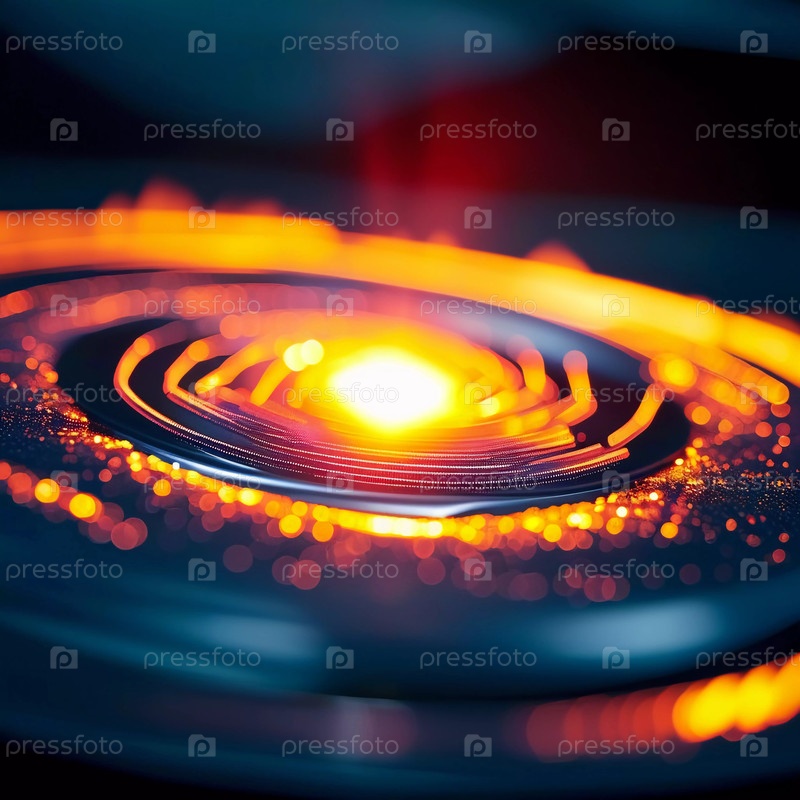Яркая вспышка оранжевого и красного света освещает закрученные космические узоры, создавая потрясающее визуальное зрелище. Генеративный ИИ