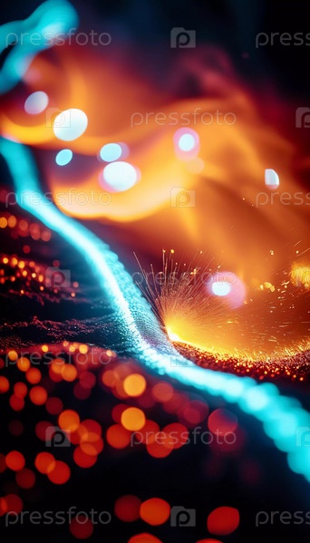 Электрические оттенки танцуют на космическом ландшафте, где огненные вспышки переплетаются с яркими огнями, создавая завораживающее представление художественной силы природы в сумерках. Генеративный ИИ