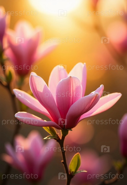 Нежные цветы магнолии, их нежно-розовые лепестки, сияющие в утреннем солнце, пробуждают сад яркими оттенками. Купаясь в золотом свете, каждый цветок, кажется, танцует от радости, когда начинается день. AI