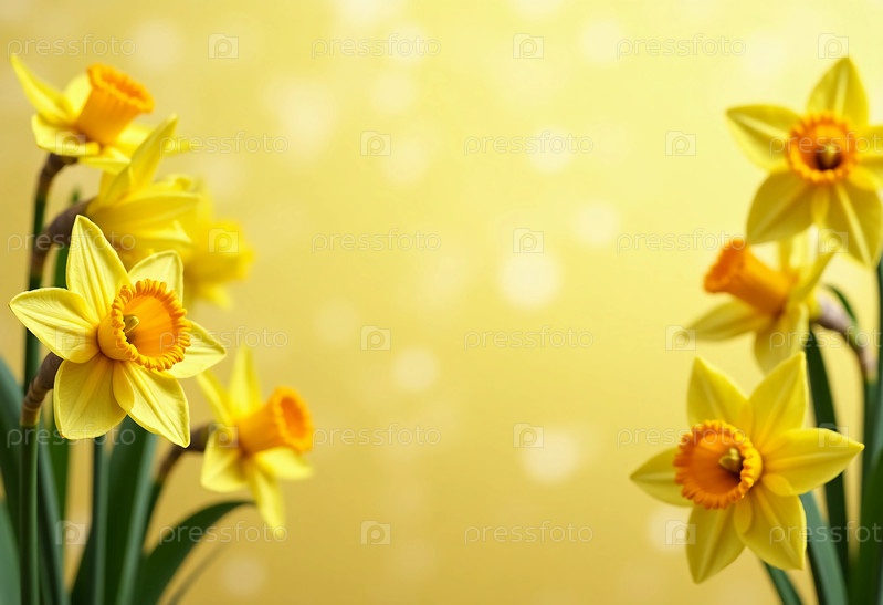 Свежие цветы нарцисса распускаются в ярких желтых тонах, демонстрируя свои Цветы наполняют воздух чувством обновления, грациозно возвышаясь на мягко размытом желтом фоне. AI