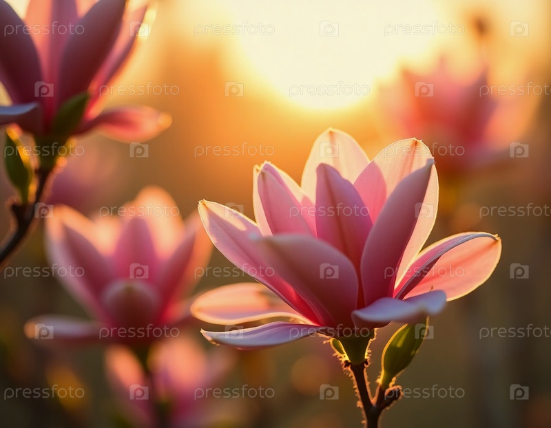 Нежные цветы магнолии, их нежно-розовые лепестки, сияющие в утреннем солнце, пробуждают сад яркими оттенками. Купаясь в золотом свете, каждый цветок, кажется, танцует от радости, когда начинается день. AI