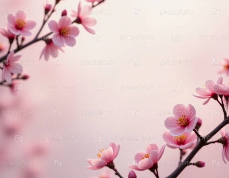 Под успокаивающим розовым фоном элегантно цветут яркие цветы сакуры, демонстрируя свои нежные лепестки и тонкие оттенки. Эта очаровательная композиция передает суть весны, приглашая к восхищению и размышлениям. Когда каждый цветок грациозно раскрывается н