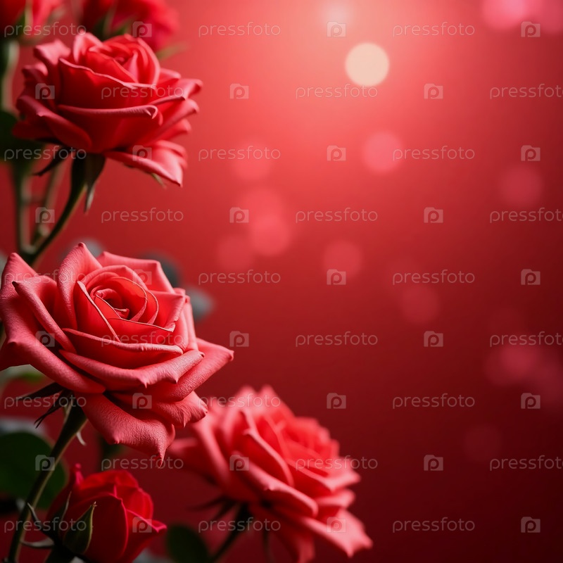 Пышные красные розы цветут страстно, бархатистые лепестки ловят нежный блеск боке огней. Очаровательная композиция завораживающая атмосфера любовь восхищение. Пустое место приглашает сердечные сообщения AI