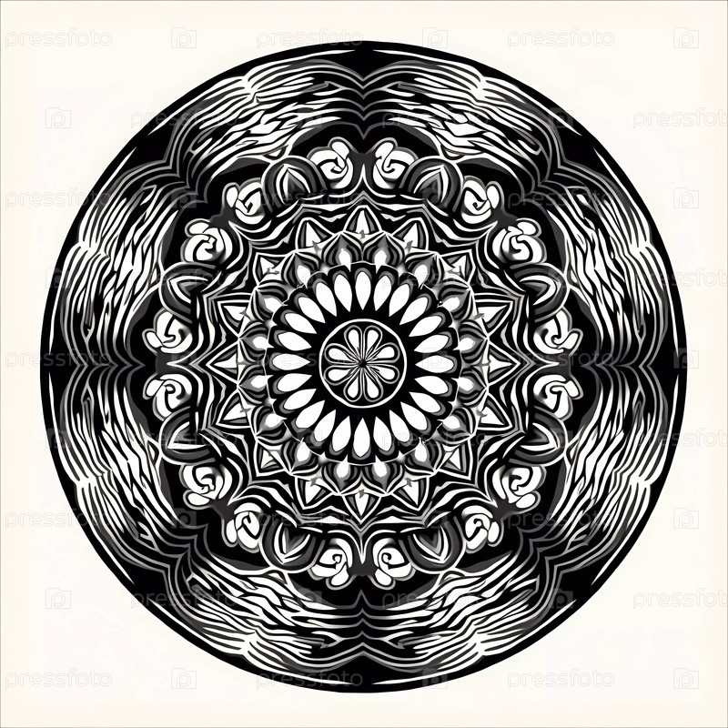 Потрясающая плитка с круглым узором отличается сложными узорами в черно-белых тонах, сочетая геометрические формы с природными элементами, создавая визуально поразительное произведение искусства, полное очарования. Генеративный ИИ