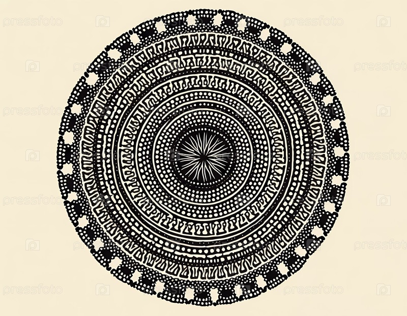 Элегантная круглая плитка с узором имеет сложные, симметрично расположенные рисунки, которые создают визуальную гармонию. Смелый черно-белый контраст усиливает ее художественную привлекательность Генеративный ИИ