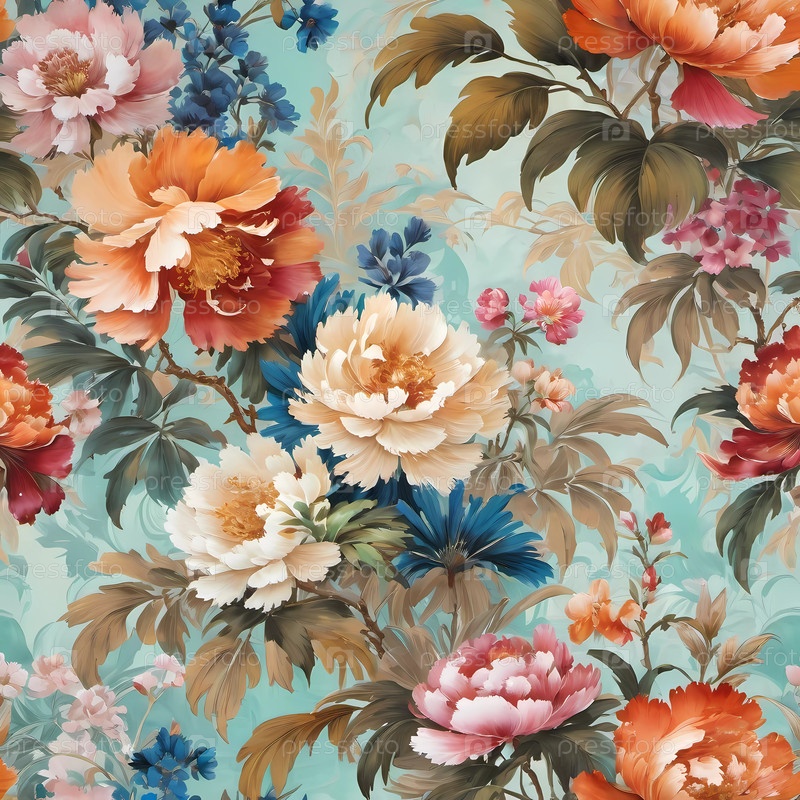 Захватывающие цветочные узоры сочетают в себе мягкие пастельные тона с яркими цветами, передавая чарующее очарование красоты природы в сложных деталях, идеально подходящих для любого художественного пространства. Генеративный ИИ