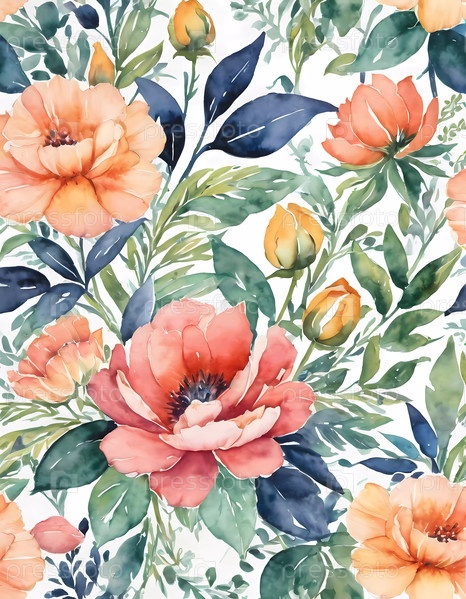 Прекрасная экспозиция нарисованных вручную цветов в мягких тонах оживит любое пространство, демонстрируя соцветия в оттенках персикового, розового и зеленого, создавая свежую ботаническую атмосферу. Генеративный ИИ