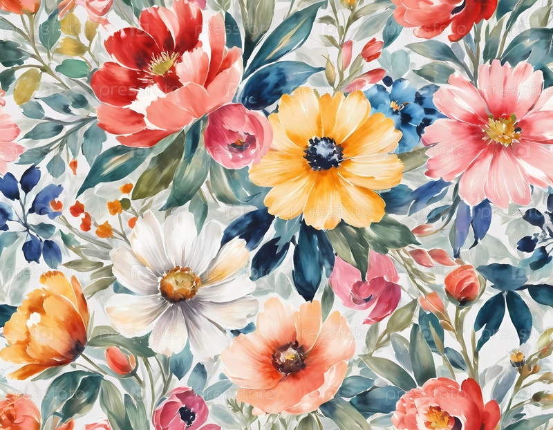 Захватывающее разнообразие цветов демонстрирует взрыв красок, переплетая лепестки и листья в гармоничный цветочный узор, который излучает радость и творчество. Генеративный ИИ
