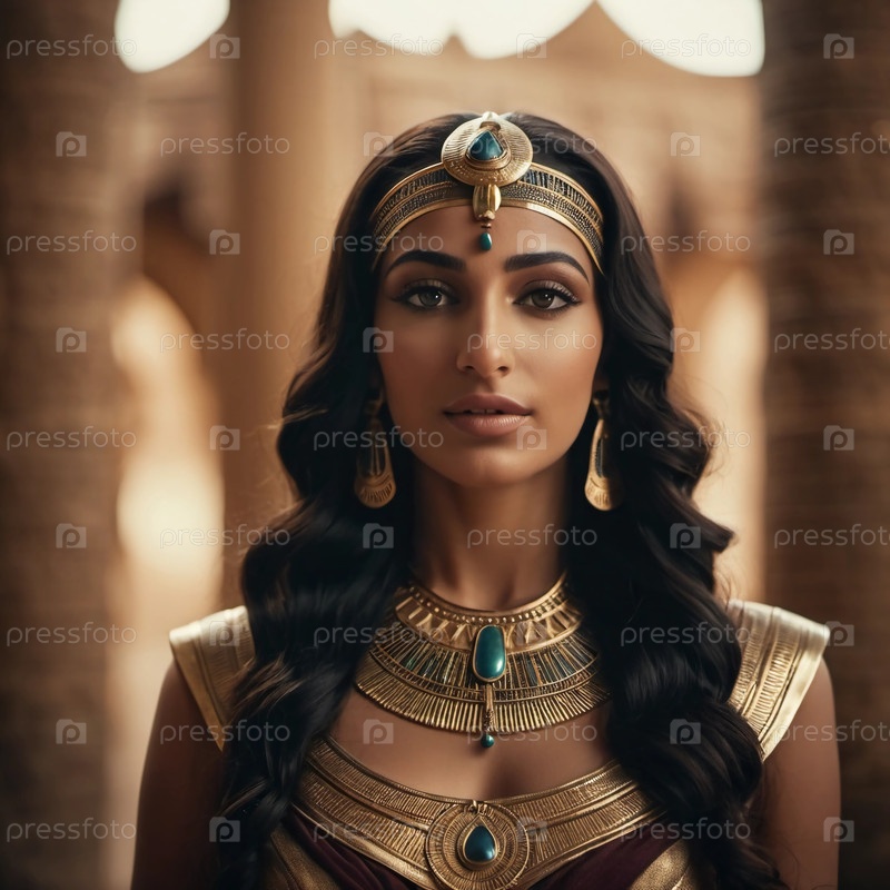 Элегантность царит, когда египетская красавица стоит в большом дворце, демонстрируя изысканные украшения и роскошные ткани Генеративный искусственный интеллект