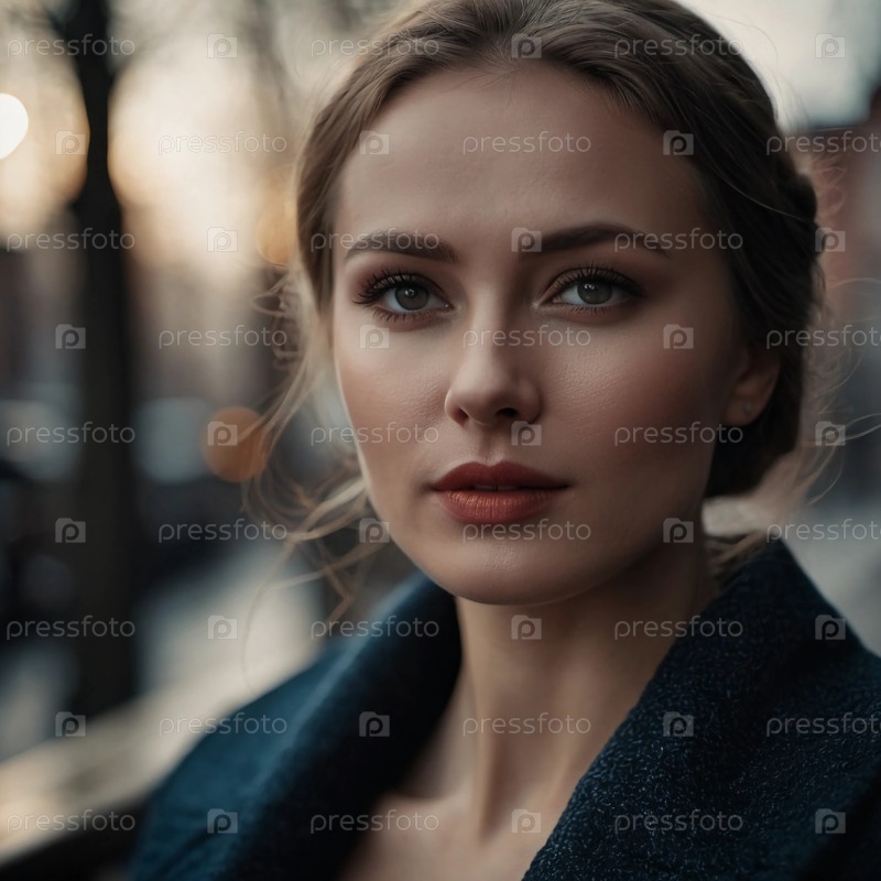 В захватывающий момент, поразительная русская красавица стоит снаружи, пока солнце садится, отбрасывая теплый свет на ее безупречную кожу. Ее безмятежное выражение лица отражает глубокие мысли Генеративный искусственный интеллект