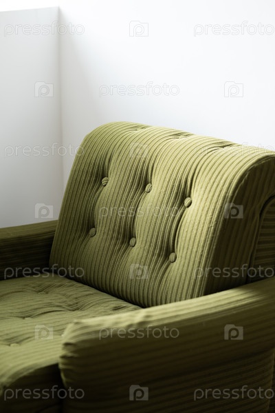 Зеленый диван в комнате, фотография крупным планом с мягким фокусом