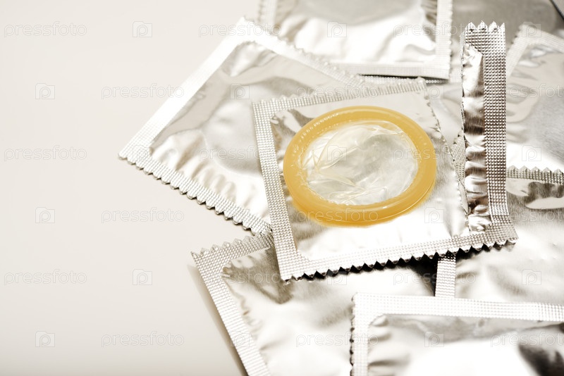 Открытый презерватив в упаковке. Мужские контрацептивы