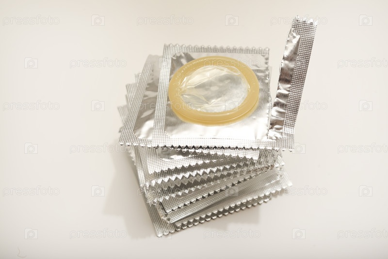 Открытый презерватив в упаковке. Мужские контрацептивы
