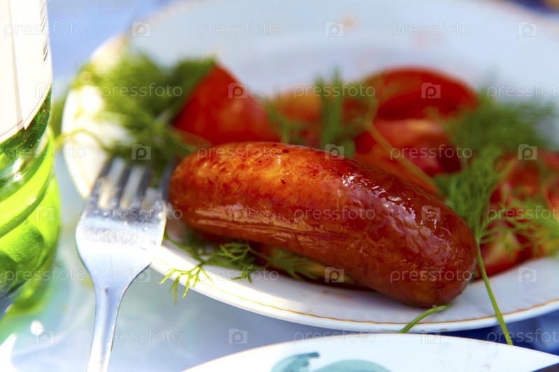 Жареные сосиски на тарелке