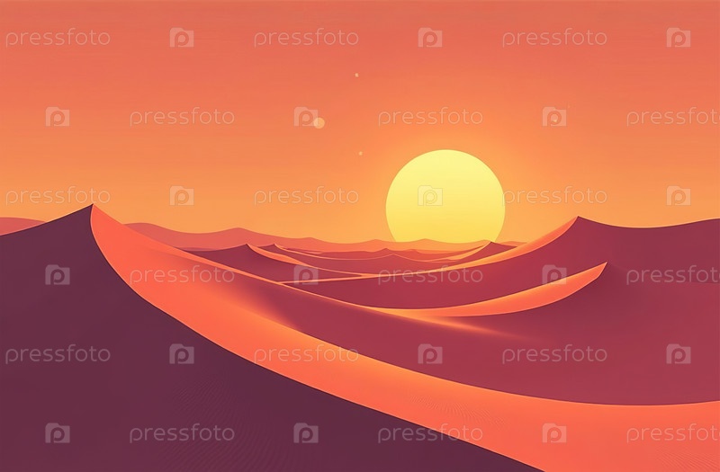 Песчаные дюны в солнечном свете, пустынные красные холмы пустыни на закатном небе. Генеративный искусственный интеллект