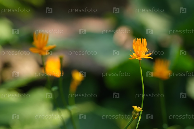Trollius chinensis (купальница китайская). Естественный изолированный фон в ботаническом саду