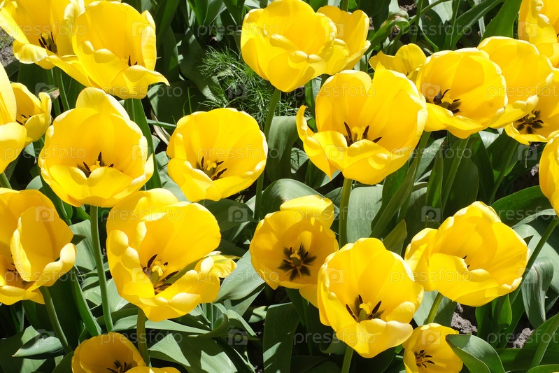 Цветущие желтые тюльпаны. Естественный изолированный фон в ботаническом саду