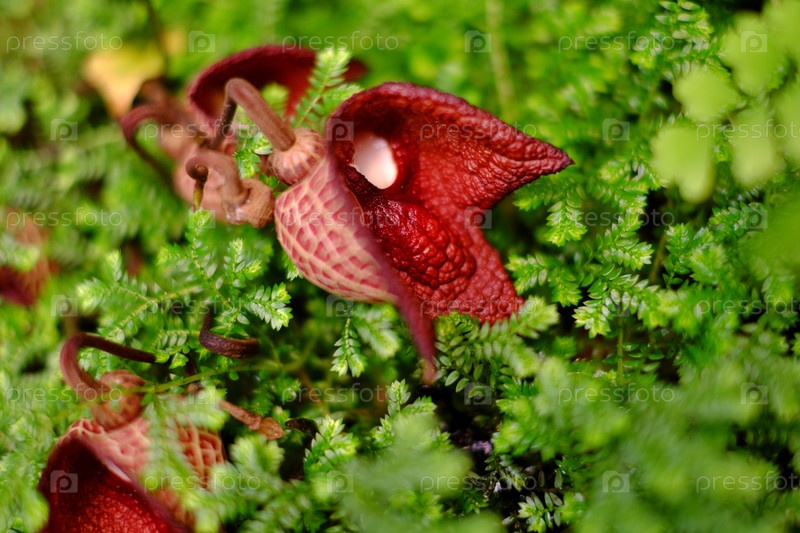 Цветущая аристолохия. Естественный изолированный фон в ботаническом саду