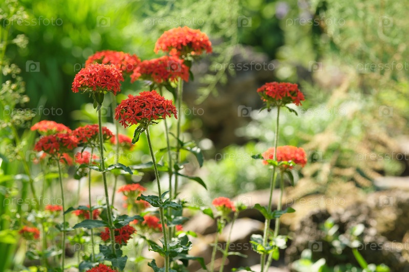 Лихнис алый. Естественный изолированный фон в ботаническом саду