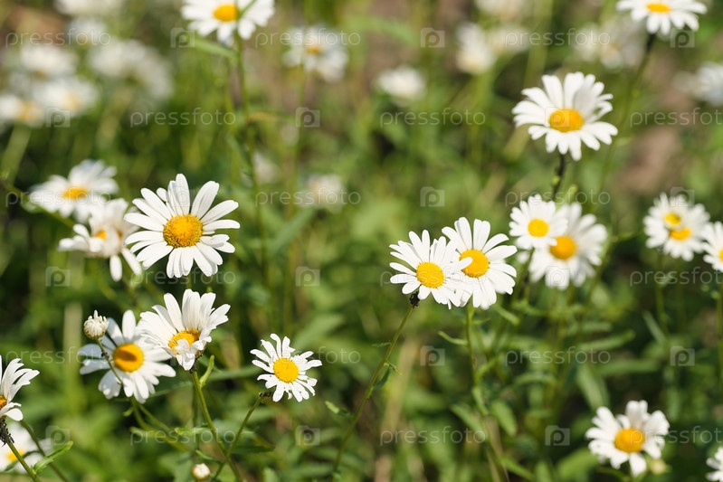 Летний пейзаж с ромашками в поле