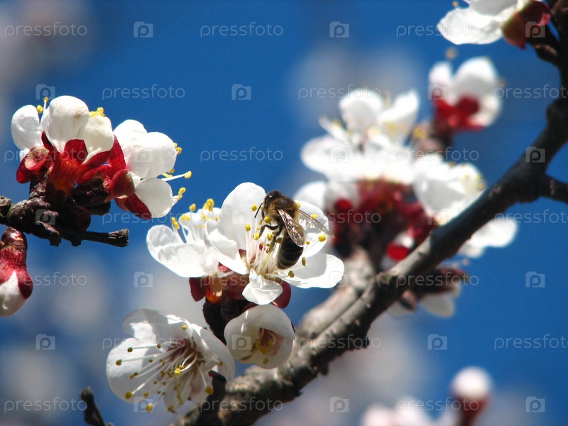 Пчела на цветущем абрикосе