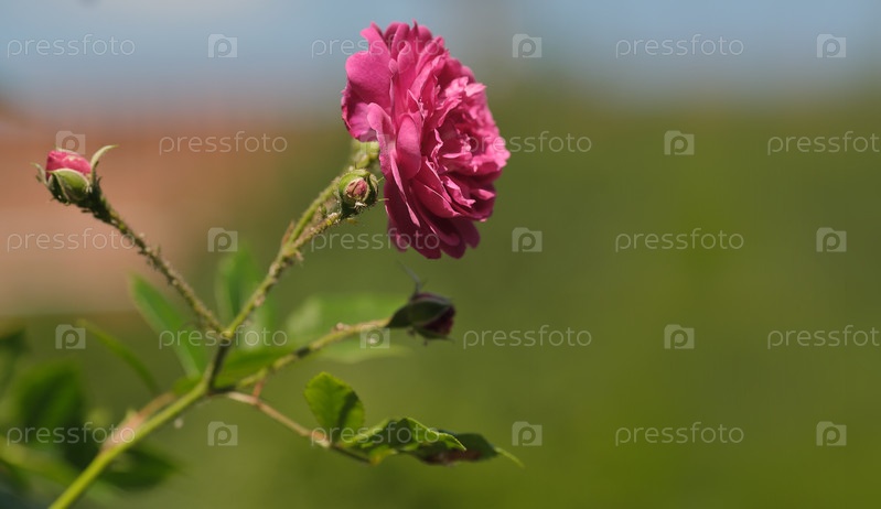 Кустовые розы исторического сорта. Естественный изолированный фон в ботаническом саду