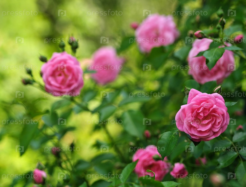 Кустовые розы исторического сорта. Естественный изолированный фон в ботаническом саду