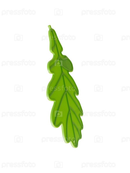 Зеленый декоративный силиконовый лист, изолированный на белом фоне. Элемент дизайна с обтравочным контуром