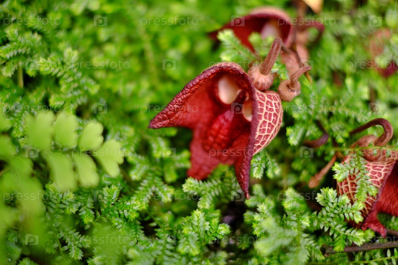 Цветущая аристолохия. Естественный изолированный фон в ботаническом саду