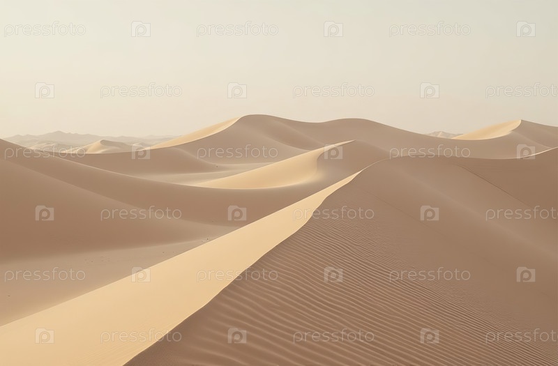 Песчаные дюны в солнечном свете, пустынные красные холмы пустыни на закатном небе. Генеративный искусственный интеллект