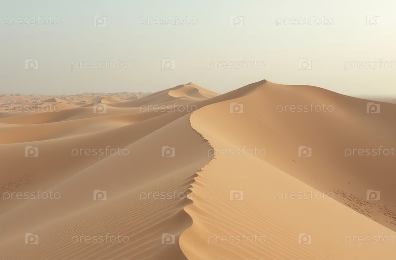 Песчаные дюны в солнечном свете, пустынные красные холмы пустыни на закатном небе. Генеративный искусственный интеллект