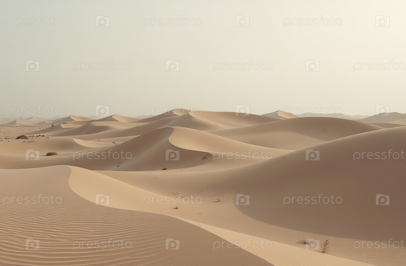 Песчаные дюны в солнечном свете, пустынные красные холмы пустыни на закатном небе. Генеративный искусственный интеллект