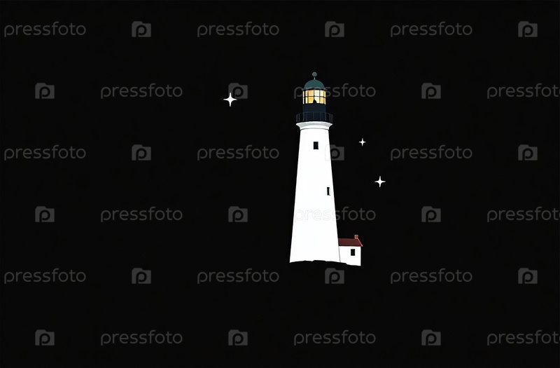 Иллюстрация Маяк в океане, морской пейзаж, каменный мыс, вода. Генеративный ИИ
