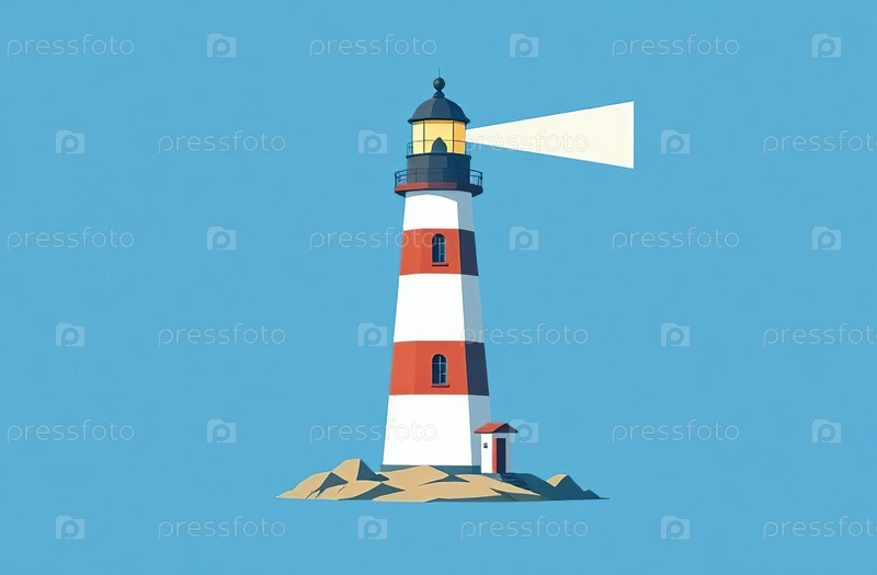 Иллюстрация Маяк в океане, морской пейзаж, каменный мыс, вода. Генеративный ИИ