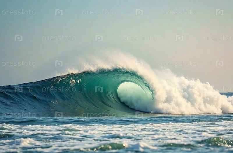 Синяя океанская волна, белая морская пена, шторм, морской пейзаж, синяя глубина. Генеративный ИИ